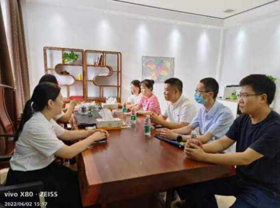 6月2日,信豐縣人民醫(yī)院第四支部書記鐘雷、耳鼻喉科主任羅金橋、院感科主任曹莉、耳鼻喉科護(hù)士長馮玉玲、四支部組織委員郭榮盛一行來到朝陽聚聲泰開展醫(yī)企對(duì)接交流,就“優(yōu)化營商環(huán)境,做實(shí)健康服務(wù)”主題與我公司支部組織委員黃麗麗深入交流。