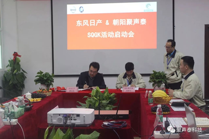 12月6日,東風(fēng)日產(chǎn)質(zhì)量保證部部長森英昭一行三人蒞臨朝陽聚聲泰(信豐)科技有限公司(以下簡稱朝陽聚聲泰),進行了SQGK活動的啟動儀式。