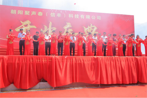 朝陽(yáng)聚聲泰(信豐)科技有限公司董事長(zhǎng)郭橋生、客戶代表韓國(guó)大元有限公司金炳日分別在開(kāi)工慶典儀式上致辭。參加慶典儀式的縣領(lǐng)導(dǎo)和企業(yè)方負(fù)責(zé)人一起為項(xiàng)目剪彩,并共同見(jiàn)證了合作簽約儀式,參觀了朝陽(yáng)聚聲泰(信豐)科技有限公司展廳,了解企業(yè)智能聲學(xué)產(chǎn)品的研發(fā)和運(yùn)用情況。
