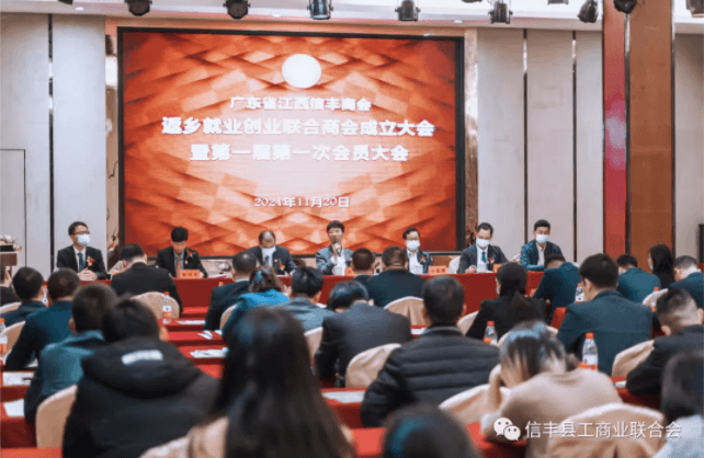 臍橙滿樹似黃金,橙香四溢飄萬里。11月20日,廣東省江西信豐商會(huì)返鄉(xiāng)就業(yè)創(chuàng)業(yè)聯(lián)合商會(huì)舉行成立大會(huì)暨第一次會(huì)員大會(huì)??h委常委、統(tǒng)戰(zhàn)部長(zhǎng)李紹武,縣政協(xié)副主席、工商聯(lián)主席宋裕華、縣委統(tǒng)戰(zhàn)部分管日常工作的副部長(zhǎng)李賽香,縣委統(tǒng)戰(zhàn)部副部長(zhǎng)、縣工商聯(lián)黨組書記、常務(wù)副主席郭昌福,各縣直部門負(fù)責(zé)人、鄉(xiāng)鎮(zhèn)黨委書記,廣東省江西信豐商會(huì)會(huì)長(zhǎng)袁勇、執(zhí)行會(huì)長(zhǎng)黃學(xué)平、廣州分會(huì)候任會(huì)長(zhǎng)王明富、深圳分會(huì)會(huì)長(zhǎng)葉昌友、惠州分會(huì)會(huì)長(zhǎng)鄒貴春、秘書長(zhǎng)蘇有華等嘉賓、會(huì)員朋友們共計(jì)300余人先后參加揭牌儀式、成立大會(huì)和慶典晚宴系列活動(dòng)。