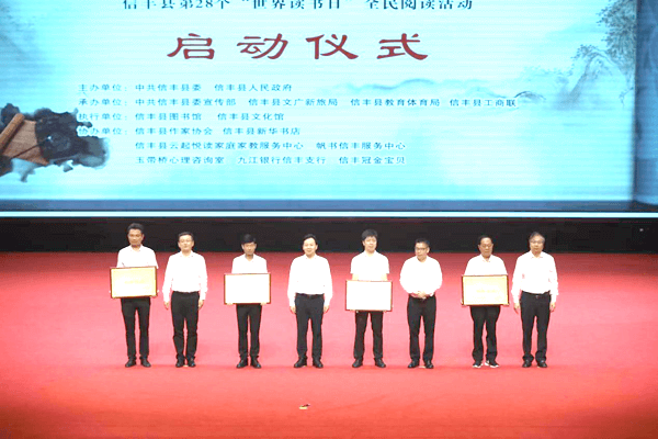 閱讀改變?nèi)松?,讀書點(diǎn)亮未來。4月23日,在第28個(gè)“世界讀書日”之際,“共建書香信豐 閱讀引領(lǐng)未來”信豐縣第28個(gè)“世界讀書日”全民閱讀活動(dòng)正式啟動(dòng)??h委書記袁炎講話并宣布活動(dòng)啟動(dòng)。他號(hào)召全縣上下,特別各級(jí)領(lǐng)導(dǎo)干部要帶頭擠出時(shí)間、靜下心來,多讀書、讀好書,讀經(jīng)典、讀范本,養(yǎng)浩然之氣、提境界格局,增強(qiáng)能力本領(lǐng),加快推進(jìn)“書香信豐”建設(shè),為建設(shè)社會(huì)主義現(xiàn)代化信豐提供強(qiáng)大智力和文化精神支撐。
