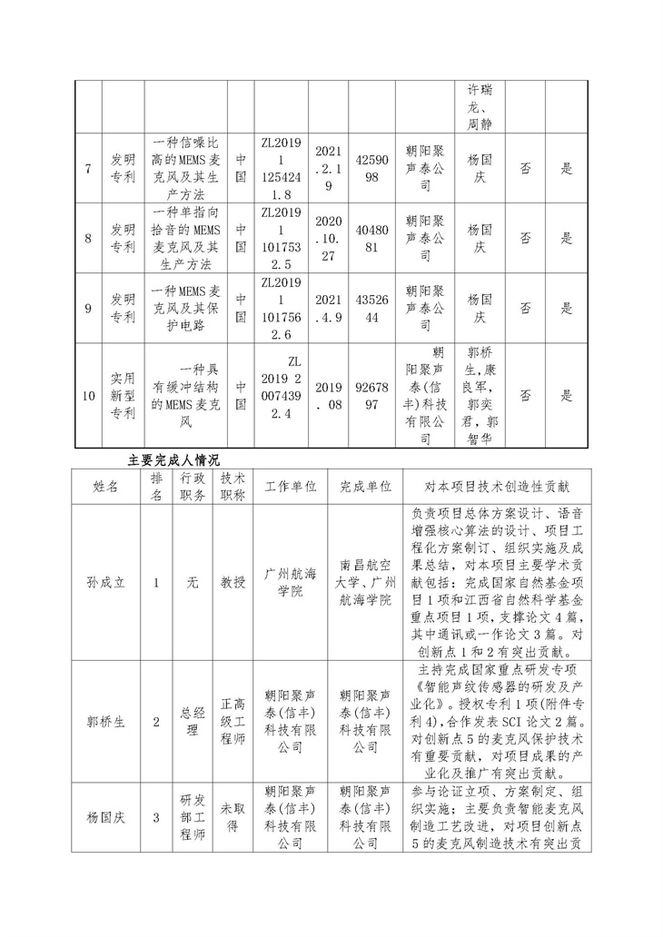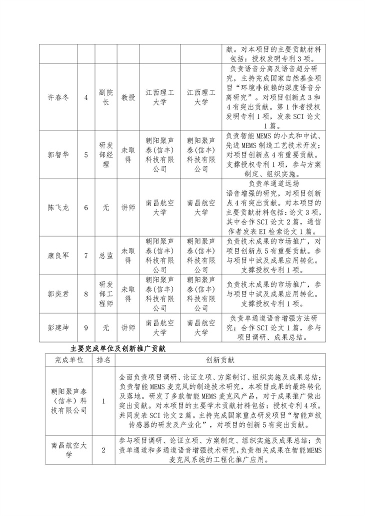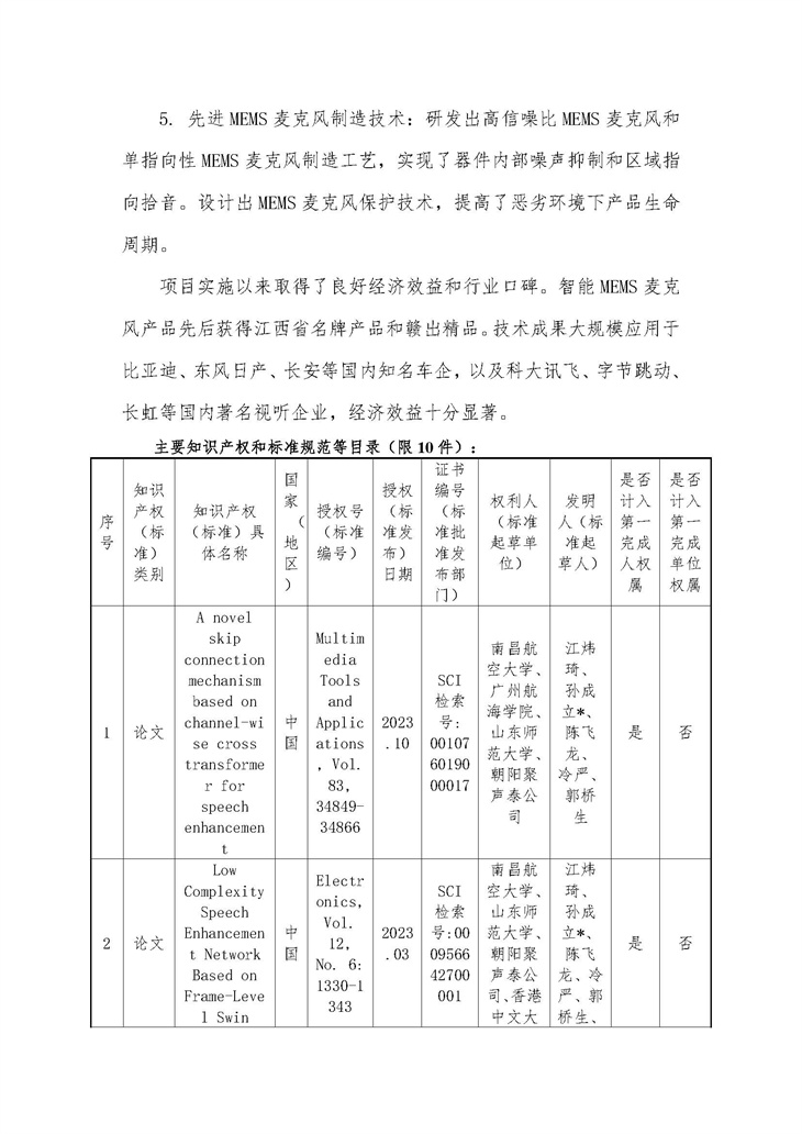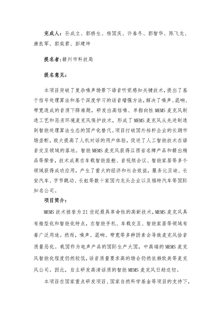 • “面向話音增強的智能 MEMS 麥克風關鍵技術研究及應用”的公示